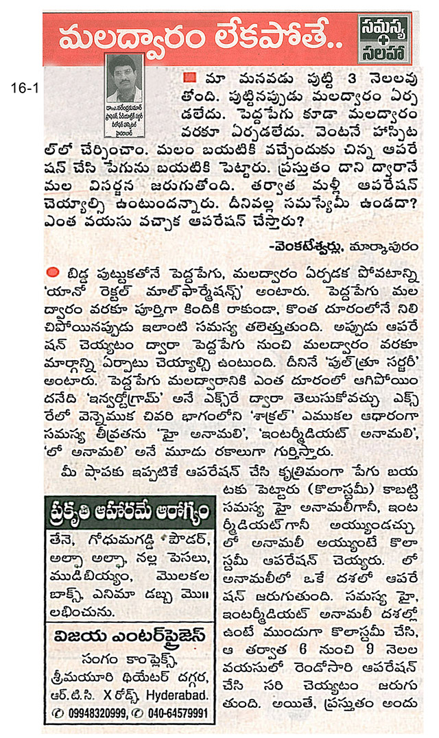 ANO-RECTAL ANOMALIES